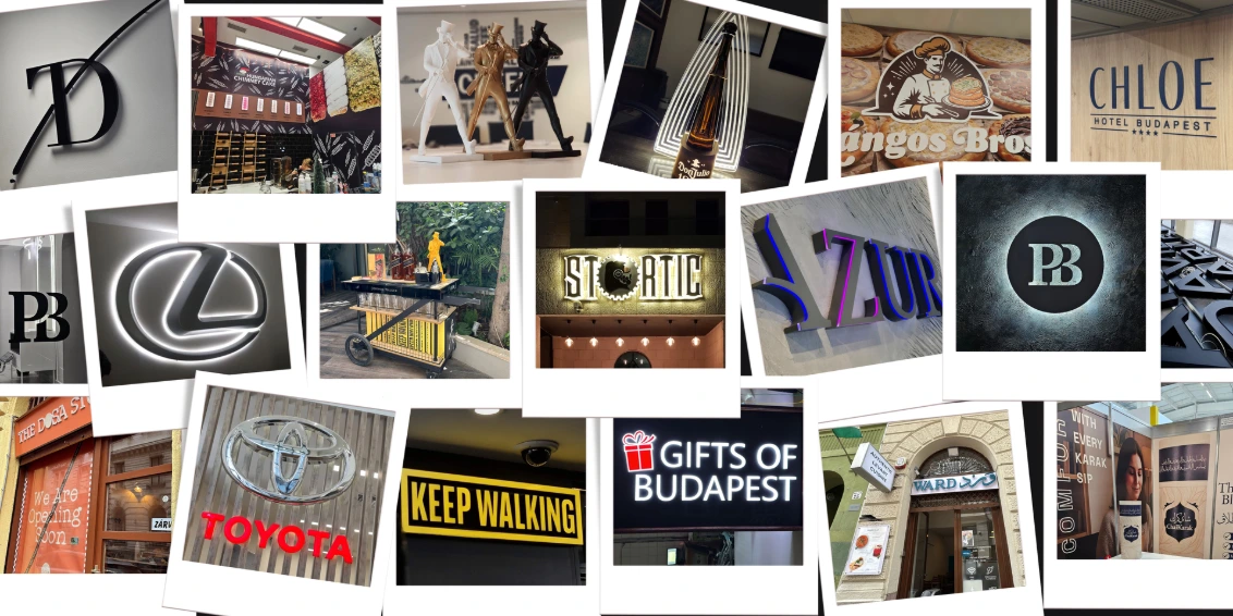 Fedezze fel egyedi reklámtábláinkat, világító feliratainkat, 3D betűinket, fénydobozainkat és nagyformátumú nyomtatási megoldásainkat. Tervezéstől a gyártáson át a telepítésig teljes körű kivitelezést biztosítunk.